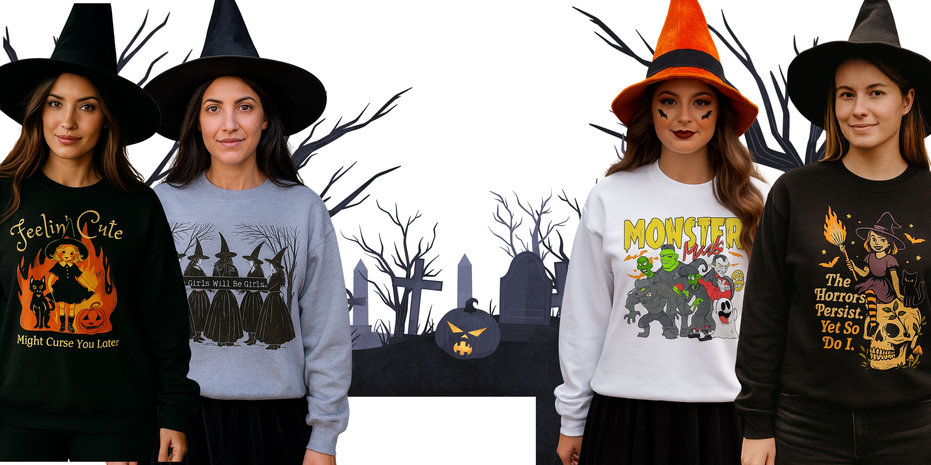 Every piece in our collection is thoughtfully chosen to bring a little extra joy to the season. From cozy Halloween sweatshirts to festive gifts, we focus on quality, comfort, and designs that feel both fun and wearable. We’re a small team that loves celebrating life’s moments, and we’re here to make it easy for you to find styles that fit the season—and fit you.
